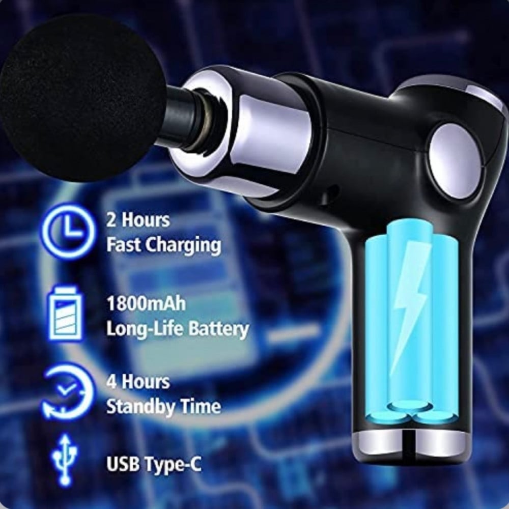جهاز مساج ذكي باللون المختلفة ، يعمل على تحسين الدورة الدموية في الجسم ، يساعد على تقليل الألم والتوتر العضلي باستخدام الاهتزازات الذكية ، يتميز ٤ مستويات للسرعة ، مجهز بـ 4 أنواع من رؤوس التدليك قابلة للتبديل